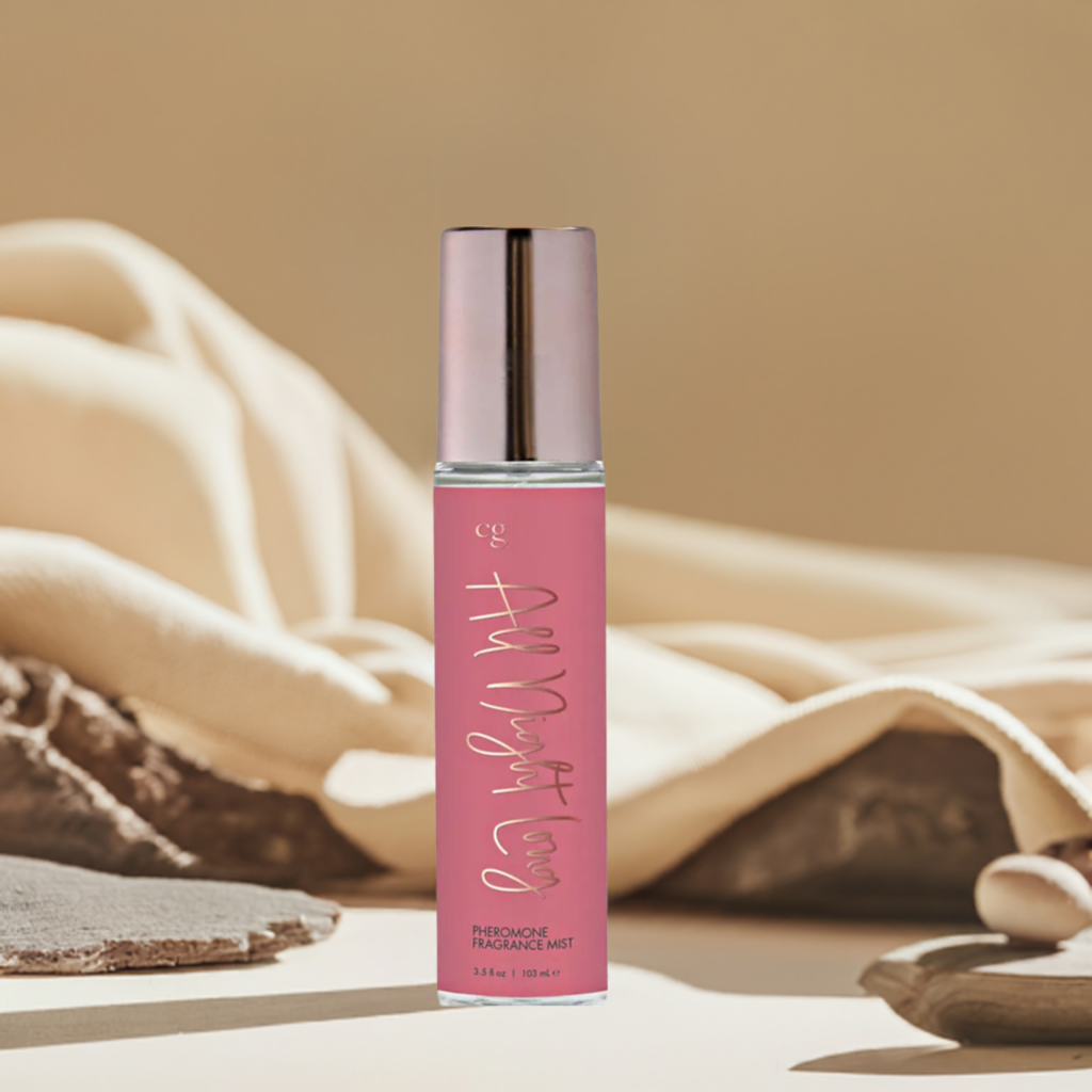 All Night Long Fragrance Mist with Pheromones 3.5 fl oz Formulated to produce sex appeal, Cg All Night Long features a soft, oriental fragrance that is a commanding blend of orange and peony blossom, with a subtle touch of black rose, vanilla and woody amber. This deeply arousing formula enhances natural pheromone production and blends with the skin`s pH to release an alluring scent, unique to you.